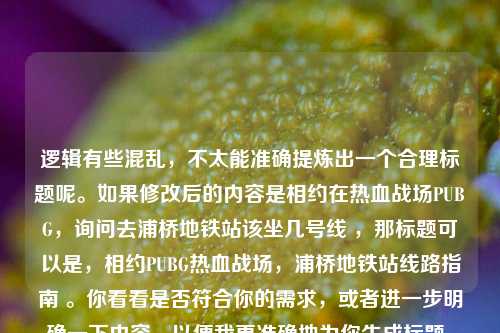 逻辑有些混乱,不太能准确提炼出一个合理标题呢。如果修改后的内容是相约在热血战场PUBG,询问去浦桥地铁站该坐几号线 ,那标题可以是,相约PUBG热血战场,浦桥地铁站线路指南 。你看看是否符合你的需求,或者进一步明确一下内容,以便我更准确地为你生成标题。