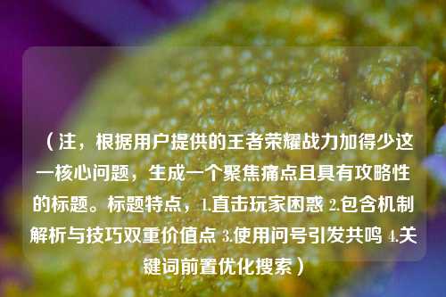 (注,根据用户提供的王者荣耀战力加得少这一核心问题,生成一个聚焦痛点且具有攻略性的标题。标题特点,1.直击玩家困惑 2.包含机制解析与技巧双重价值点 3.使用问号引发共鸣 4.关键词前置优化搜索)