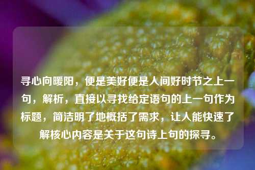 寻心向暖阳,便是美好便是人间好时节之上一句,解析,直接以寻找给定语句的上一句作为标题,简洁明了地概括了需求,让人能快速了解核心内容是关于这句诗上句的探寻。