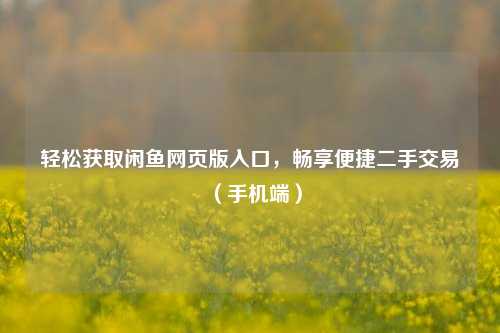 轻松获取闲鱼网页版入口,畅享便捷二手交易(手机端)