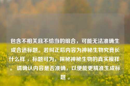 包含不相关且不恰当的组合,可能无法准确生成合适标题。若纠正后内容为神秘生物究竟长什么样 ,标题可为,探秘神秘生物的真实模样 。 请确认内容是否准确,以便能更精准生成标题 。