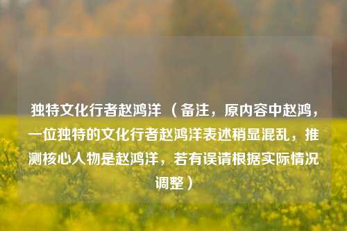 独特文化行者赵鸿洋 (备注,原内容中赵鸿,一位独特的文化行者赵鸿洋表述稍显混乱,推测核心人物是赵鸿洋,若有误请根据实际情况调整)