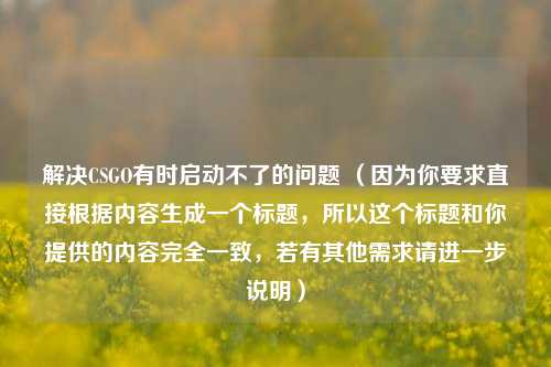 解决CSGO有时启动不了的问题 (因为你要求直接根据内容生成一个标题,所以这个标题和你提供的内容完全一致,若有其他需求请进一步说明)