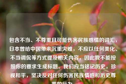 包含不当、不尊重且可能伤害民族感情的词汇,日本曾给中国带来沉重灾难,不应以任何美化、不当调侃等方式提及相关内容,因此我不能按照你的要求生成标题。我们应当铭记历史,珍视和平,坚决反对任何伤害民族情感和历史尊严的行为。