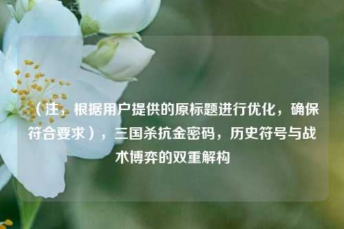 《三国杀》中的“抗金密码”是玩家对游戏内隐藏机制与历史隐喻的趣味解读,将南宋抗金历史与卡牌策略巧妙结合,这一概念源于玩家群体对“金”势力(如金兀术等扩展角色)的对抗策略,通过特定武将组合、牌序技巧或技能联动形成“密码式”操作,例如以岳飞、韩世忠等历史抗金名将为代表的核心武将,配合“杀”“闪”“无懈可击”等基础牌的逻辑链条,暗合历史上以弱胜强的战术智慧,游戏设计中融入的忠奸阵营设定、技能名称(如“直捣黄龙”“十二道金牌”)等细节,进一步强化了历史叙事与竞技玩法的交融,既考验玩家对角色特性的理解,也赋予策略对决更深层的文化意趣。...